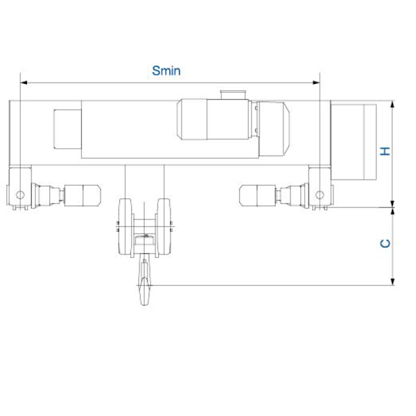 Capacity  kg Lifting height m Lifting speed m/min Lifting power  kw Traveling speed m/min Traveling power     kw Lifting working system FEM/ISO Traveling working system FEM/ISO H(mm) C(mm) Smin