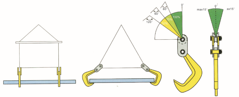 WLL is the max. load that the clamps work in pairs with a lifting angle of 60°